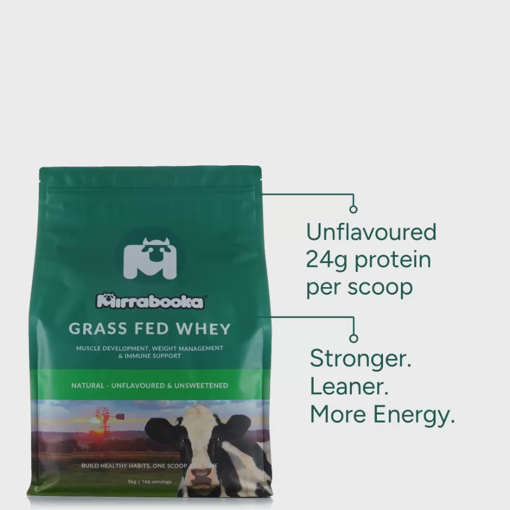 Welcome to the protein powder that's not just filler- it's the cornerstone of your nutrition. Tired of artificial additives, filler ingredients, gums, and digestive woes? Mirrabooka Grass Fed Whey is crafted with clean, Australian whey protein to help you achieve your health and fitness goals, naturally.